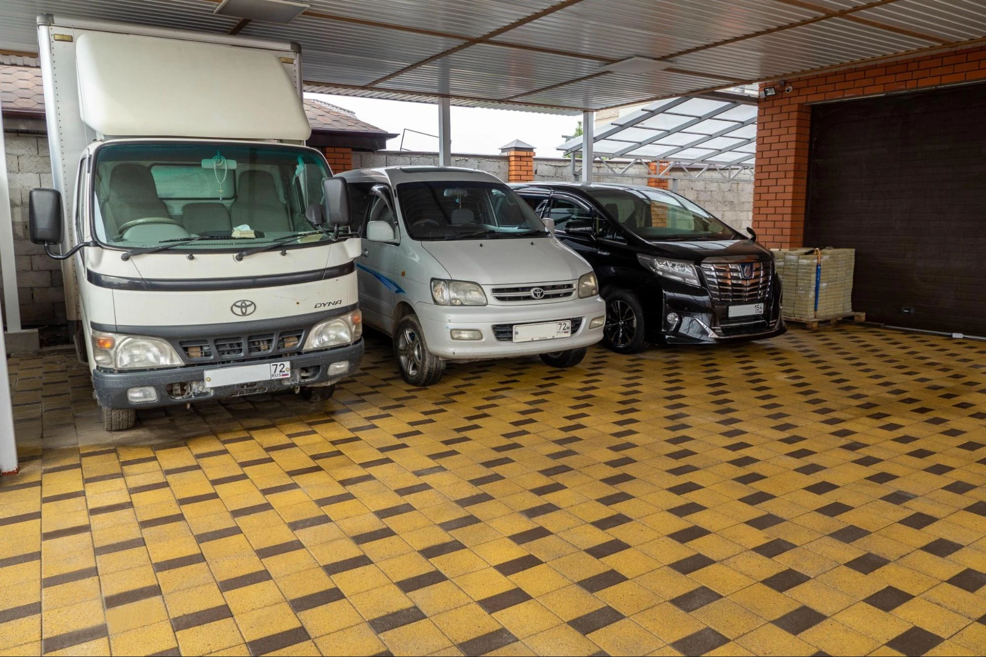 • Парковочные зоны. Использование при благоустройстве плитки толщиной 60-80 мм обеспечивает прочность и долговечность покрытия, выдерживающего нагрузку от автомобилей.