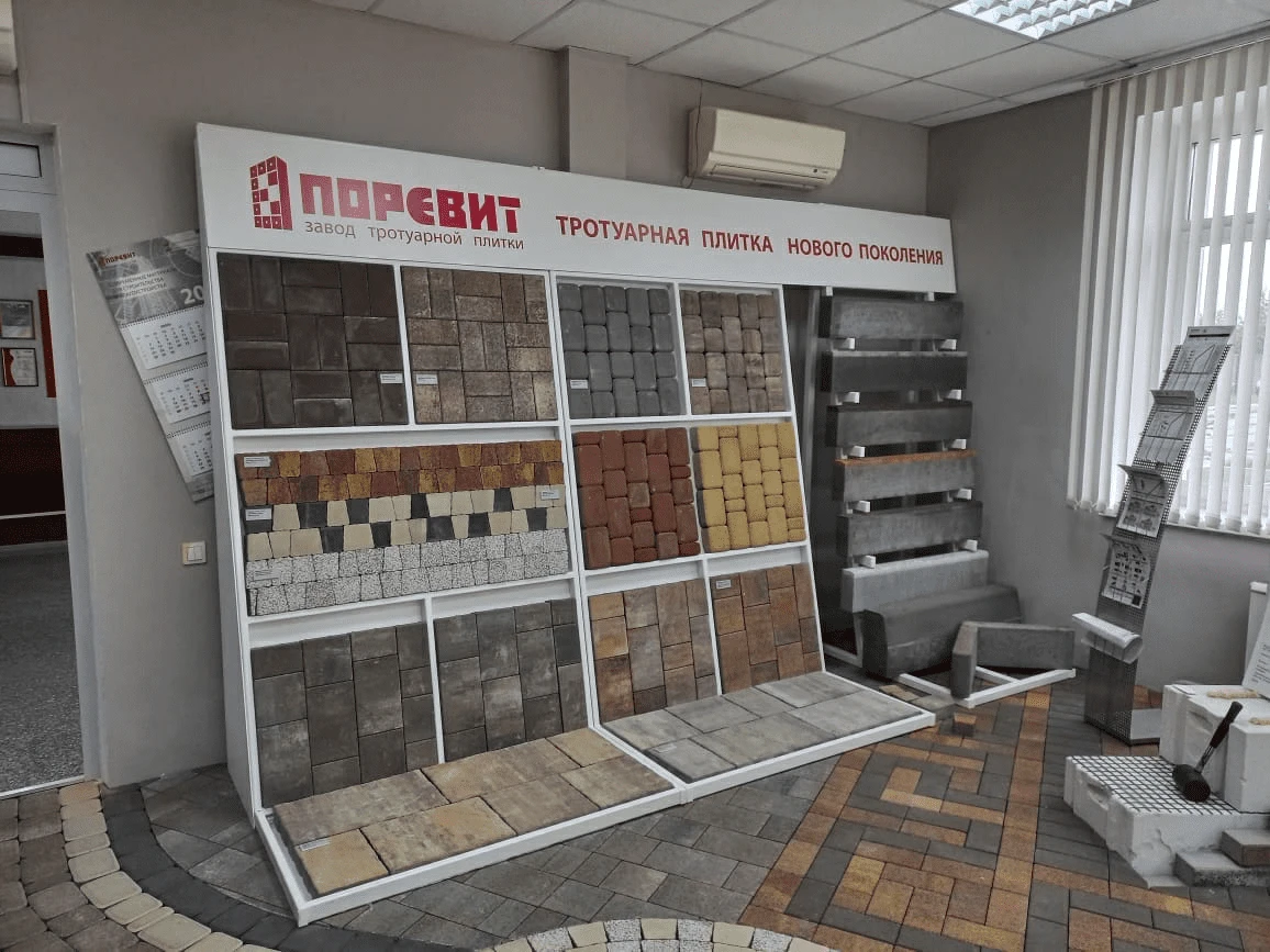 Преображения в нашем офисе продаж в Ялуторовске! Теперь вы сможете увидеть фирменные стены «Поревит», а также образцы тротуарной плитки.