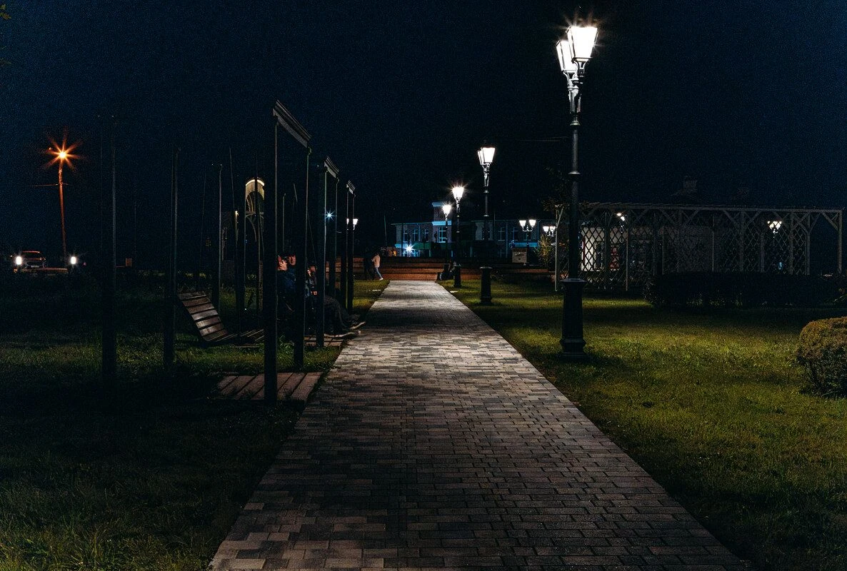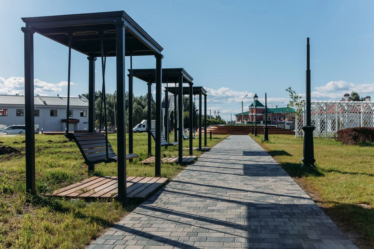 4. Установили освещение, скамейки и качели