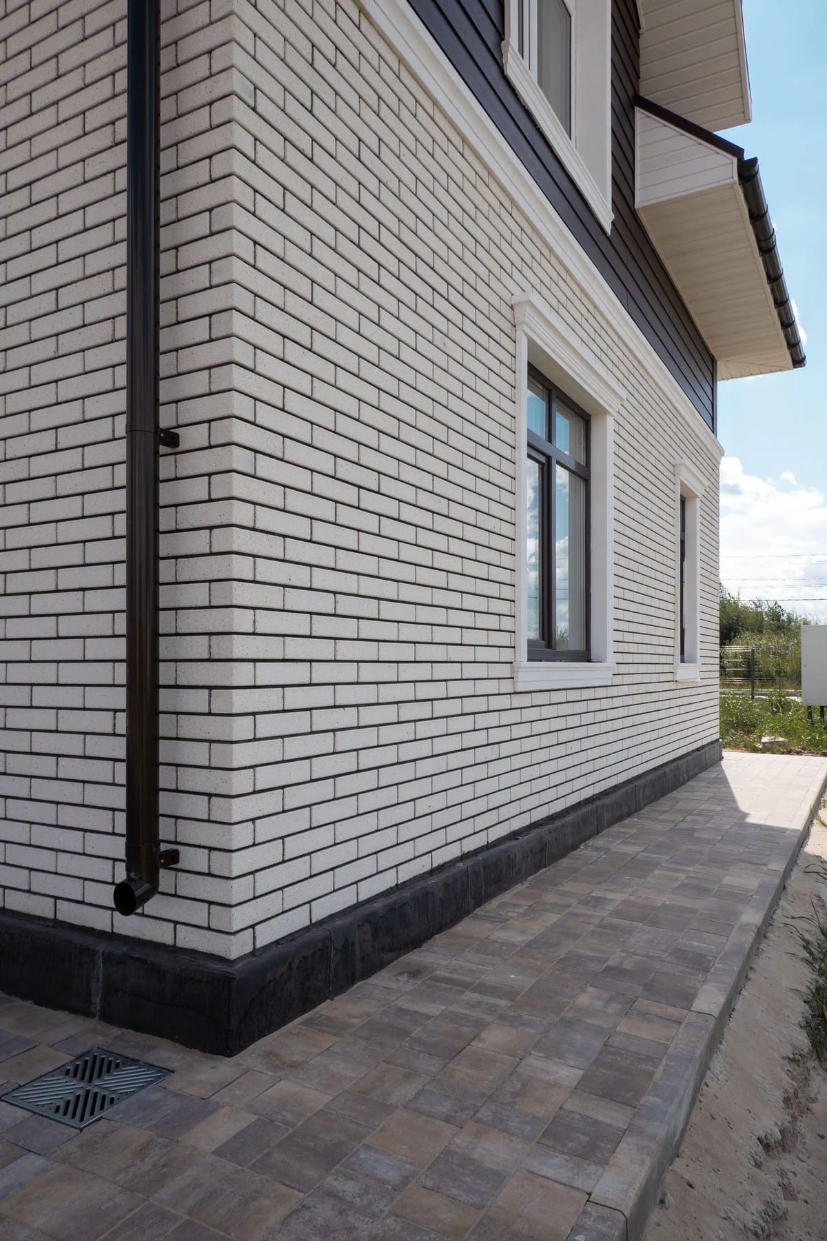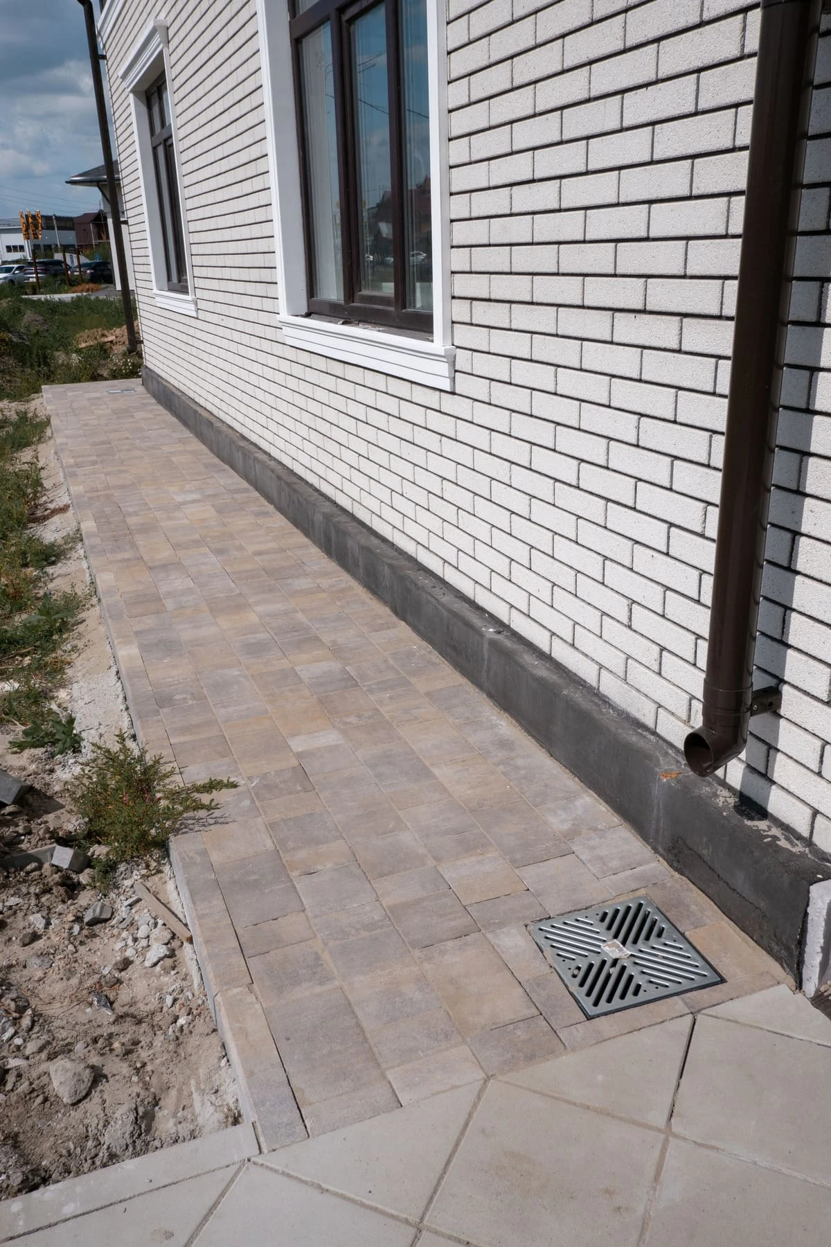 Пешеходные дорожки и отмостка выполнена тротуарной плиткой с применением бордюров.