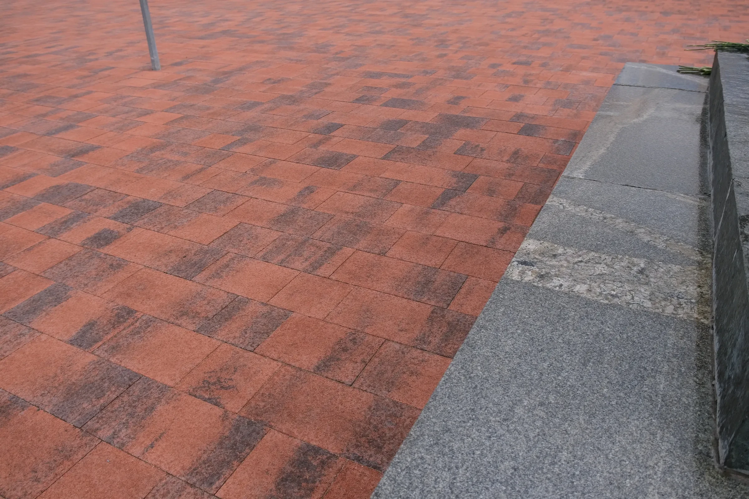 Заменено старое тротуарной покрытие на плиту формы Трио, покрытие Гранит, цвет Сиена.
